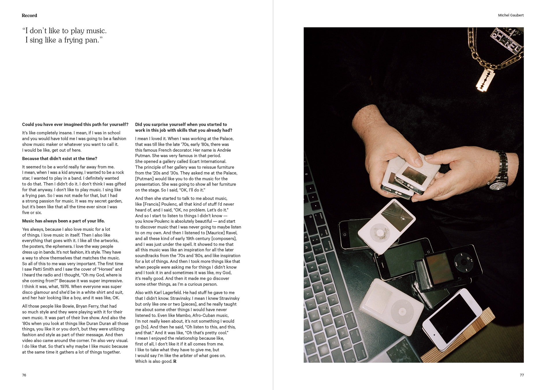 Louise Chen, Sebastien Tellier, Christophe Lemaire, Michel Gaubert and Misha Hollenbach all interviewed by Karl Henkell. Zaltan interviewed by Raphael Le Manchec.